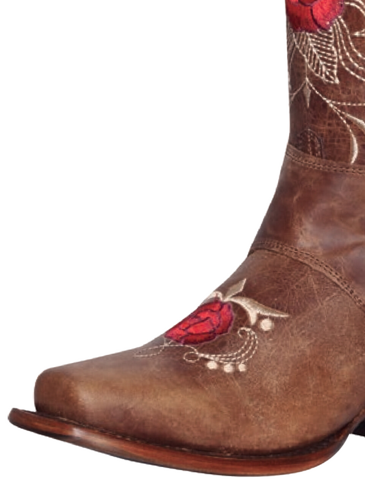 Rodeo Cowboy Boots with Embroidered Genuine Leather Flower Tube for Women 'El General' - ID: 44641