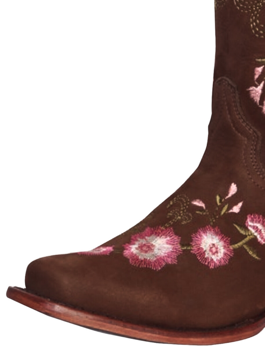 Rodeo Cowboy Boots with Nobuck Leather Flowers Embroidered Tube for Women 'El General' - ID: 44644